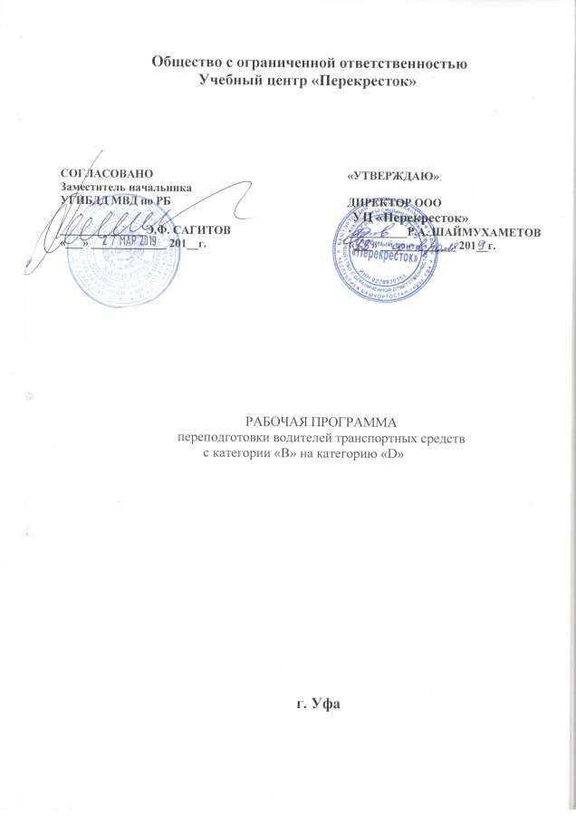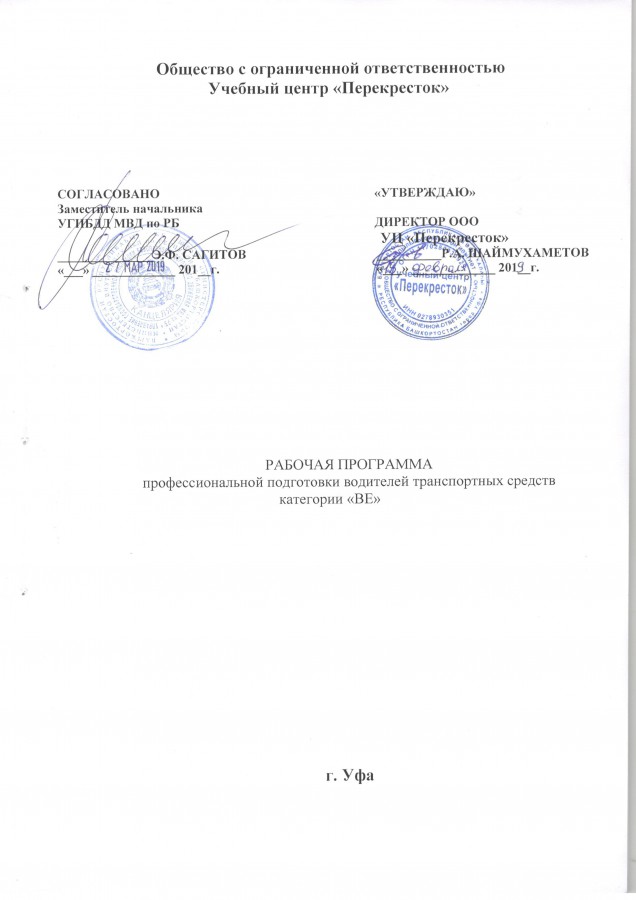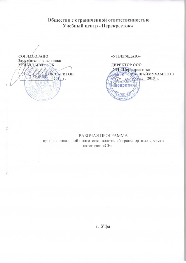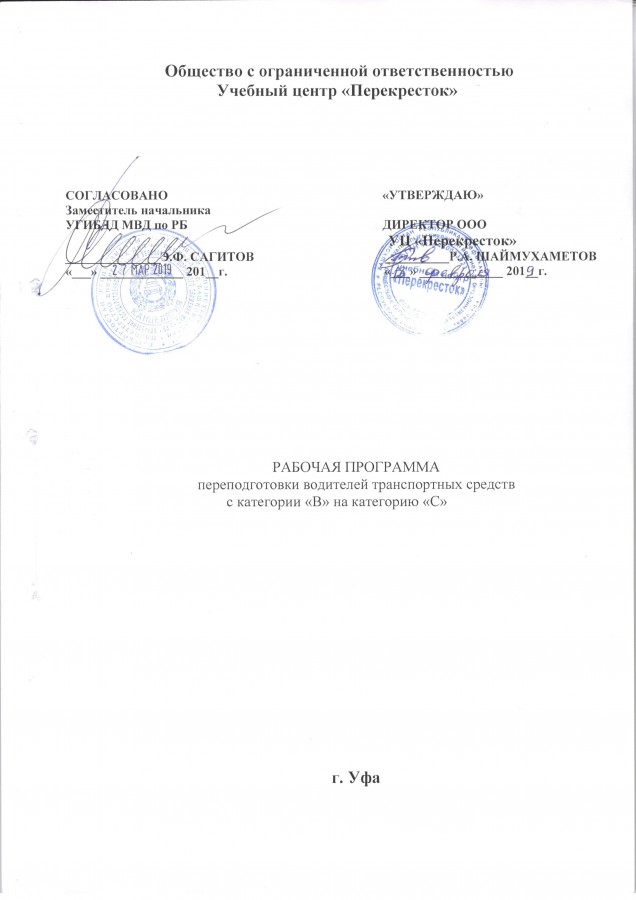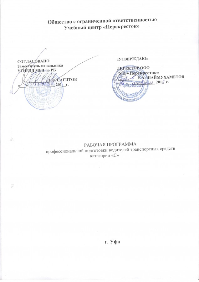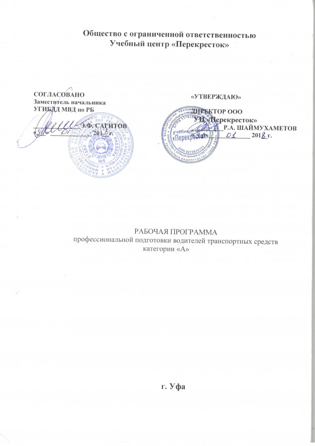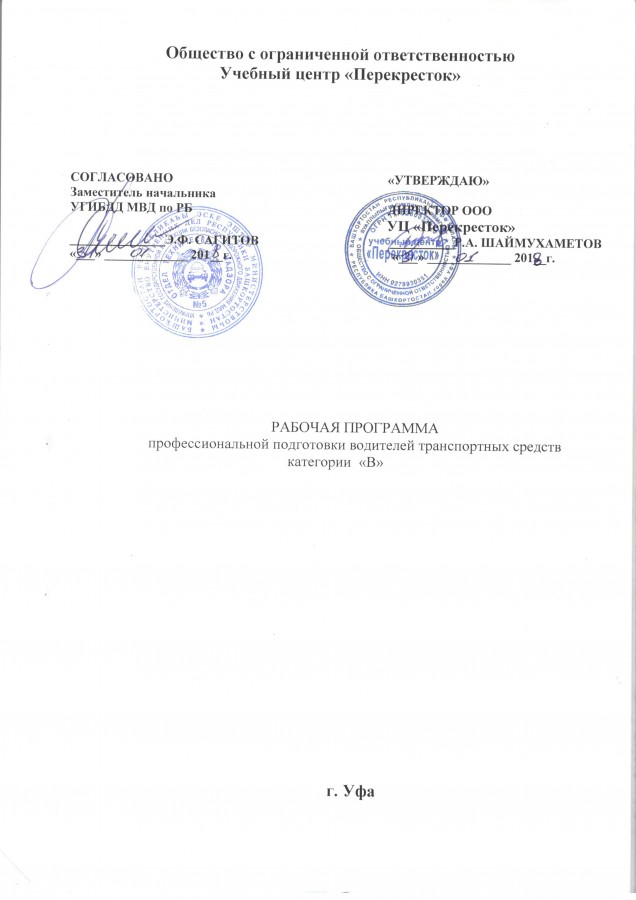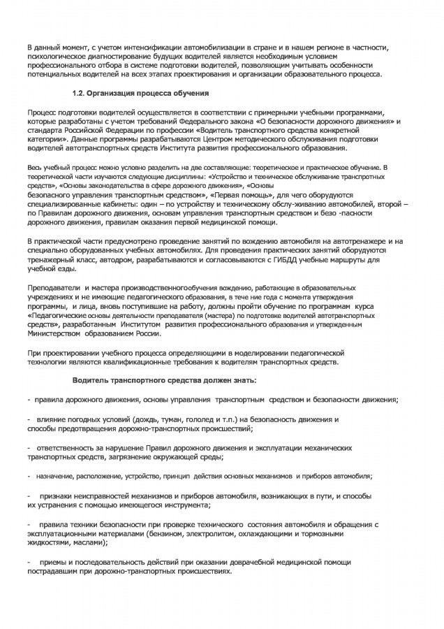Рабочая программа профессиональной подготовки водителей транспортных средств